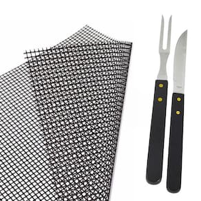 Kit Churrasco Garfo Faca e Tela Antiaderente Teflon Kit Tela Antiadenrente para Churrasco Teflon Faca e Garfo