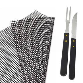 Kit Churrasco Garfo Faca e Tela Antiaderente Teflon Kit Tela Antiadenrente para Churrasco Teflon Faca e Garfo