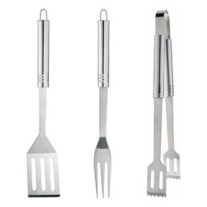 O Kit Churrasco Grill 3 pçs é composto por 3 peças elaboradas com estrutura em aço inox, um material durável de excelente qualidade que confere boa resistência a altas temperaturas. Ele acompanha pinça, espátula e garfo, utensílios que facilitam o preparo do churrasco.