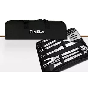 1x Pegador de Churrasco 1x Espátula de Churrasco 1x Faca de Churrasco 1x Garfo Trinchante 1x Pincel Silicone 4x Espetos 1x Estojo de Transporte Marca: Minimen