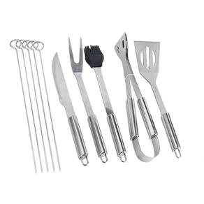 Kit Churrasco Inox Com Bolsa Churrasqueiro Profissional 9 Pça Descrição O Kit Churrasco oferece praticidade e eficiência para suas atividades de churrasco, seja em casa ou em qualquer lugar. Fabricados em aço inoxidável de alta qualidade, os utensílios são duráveis e resistentes. Com design prático, possuem alça para pendurar, facilitando o armazenamento e acesso durante o preparo. Acompanha uma bolsa com zíper para organização e transporte conveniente. O kit inclui um pegador, uma espátula, uma faca, um garfo trinchante, um pincel de silicone e quatro espetos, garantindo que você tenha todos os utensílios essenciais para um churrasco perfeito. Ideal para uso em churrasqueiras, acampamentos, piqueniques e outras ocasiões ao ar livre.