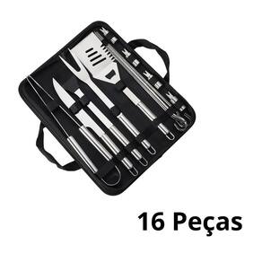 Kit Churrasco Inox Premium 16 Peças Com Estojo