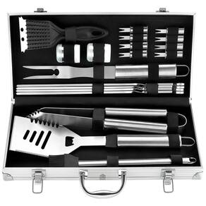 Kit Completo de Acessórios para Churrasqueiras Espátula, garfo, pinça, pincel de alinhavo, escova de grelha, saleiro e saleiro, 8 suportes de milho, 4 espetos, caixa de alumínio. Super forte e durável Todas as ferramentas de churrasco são feitas de aço inoxidável de nível profissional que resiste ao calor e resiste ao teste do tempo. Estojo portátil e conveniente O kit de tamanho compacto é leve para transportar e zenamento, perfeito para churrasco, camping, piqueniques e cozinhar ao ar livre. Idéias de presente para grelhar perfeitas para todos Este conjunto de ferramentas de grelha de luxo com estojo pode ser absolutamente feito para apresentação de presentes para familiares e amigos no aniversário, casamento, Dia dos Namorados, Dia dos Pais, Dia das Mães, Dia de Natal Marca: Não Informado