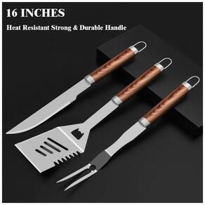 AÇO INOX DE ALTA QUALIDADE Nosso conjunto de ferramentas de grelha de 25 peças feito de aço inoxidável de nível profissional resistente à ferrugem, durável e duradouro, todas as ferramentas de churrasco são extra grossas e aguentam bem após muito uso sem dobrar ou rachar, o pinças e espátula são todos pesados, mas leves o suficiente para manusear com qualquer alimento neles, projetado com alça alongada para manter uma distância segura do fogo sem se preocupar em se queimar.