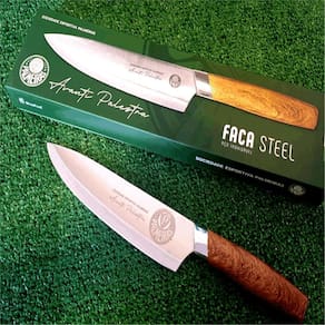 Kit churrasco Oficial Tabua de carne + Faca personalizada Presente Kit Churrasco : Para celebrar a paixão pelo Verdão com grande estilo Leve a paixão pelo para o seu churrasco com este kit exclusivo e personalizado Este kit churrasco é perfeito para os torcedores palmeirenses que apreciam um bom churrasco e querem demonstrar seu amor pelo Verdão em todos os momentos. Ideal para presentear ou para usar em seus churrascos com amigos e familiares, este kit é a combinação perfeita de funcionalidade, estilo e paixão pelo . Itens inclusos: Tábua de corte em madeira: Fabricada em madeira de alta qualidade, possui um design exclusivo com o escudo do , ideal para cortar e servir carnes com praticidade e estilo. Faca personalizada a laser: A faca possui lâmina em aço inoxidável de alta qualidade, garantindo um corte preciso e durável. O cabo em madeira proporciona um manuseio confortável e seguro. A personalização a laser com o logo do torna a faca ainda mais especial. Características que fazem a diferença: Design exclusivo: O kit apresenta um design exclusivo com o escudo e o logo do , ideal para os torcedores que querem demonstrar seu amor pelo clube. Materiais de alta qualidade: A tábua é fabricada em madeira resistente e a faca possui lâmina em aço inoxidável, garantindo a durabilidade e a qualidade dos produtos. Personalização a laser: A faca é personalizada com o logo do gravado a laser, conferindo um toque especial e exclusivo ao kit. Praticidade e funcionalidade: O kit é perfeito para preparar e servir carnes em churrascos, proporcionando praticidade e estilo para os momentos de lazer. Especificações técnicas: Tábua de corte: Material: Madeira Dimensões: 47cm x 30cm Faca: Material da lâmina: Aço inoxidável Material do cabo: Madeira