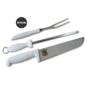 Kit churrasco tabua corinthians +kit faca chaira garfo timao Kit oficial tabua+kit churrasco garfo faca chaira - 1 tábua retangular 47x30x2cm Tábua fabricada em madeira teca durável e muito resistente. Trabalhamos com o que há de melhor em matéria de madeira. Agregado com um fino acabamento e durabilidade de longos anos. A madeira teca é conhecida mundialmente na área gourmet por sua beleza, leveza e resistência. Nossos produtos passam por inúmeros processos de controle de qualidade para lhe garantir o que temos de melhor Madeira ecologicamente correta e sustentável. Com dof documento de origem florestal, certificado pelo ibama . - 1 kit utensílios Garfo, faca e chaira. Características: Cabo em polipropileno. Lâmina em inox.Fabricante ebartes Marca: Eb Artes