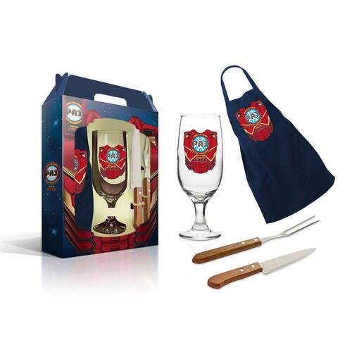 Kit churrasqueiro pai vc é de ferro - ref. 6766 descrição do produto: o kit churrasqueiro é um produto de alta qualidade, composta por uma taça de vidro, um avental, um garfo, uma faca e uma caixa de presente também personalizada, o que fará toda diferença ao presentear aquela pessoa que você gosta. Possui lindas e criativas estampas, o presente ideal 01 taça floripa 300ml 01 garfo para churrasco 01 faca 6 01 avental acompanha: embalagem especial para presente embalagem: altura: 36.00 cm Largura: 8.00 cm Comprimento: 25.00 cm Peso: 580 g Marca: Catuaí Decor Ean: 7899701870189