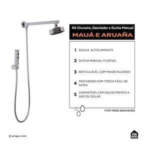O Kit Ducha Autolimpante Longo Mauá com Desviador Mundaú e Ducha Manual Aruanã Pingoo.casa é uma solução completa para um banho prático, moderno e elegante.