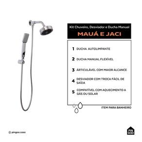 O Kit Ducha Autolimpante Mauá com Desviador Mundaú e Ducha Manual Jaci Pingoo.casa é uma solução completa para um banho prático, moderno e elegante.