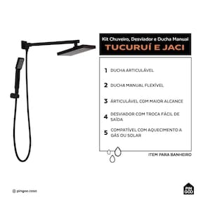 O Kit Ducha Tucuruí com Desviador Mundaú e Ducha Manual Jaci Pingoo.casa é uma solução completa para um banho prático, moderno e elegante.