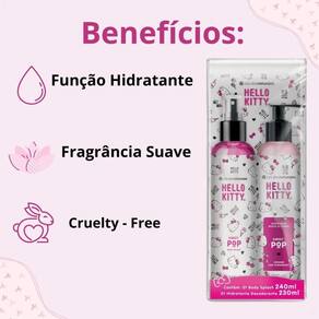 Kit contém:1 Body Splash Hello Kitty Sweet Pop 240ml e 1 Loção Hidratante Hello Kitty Sweet Pop 230ml