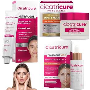Kit cicatricure contorno dos olhos porcelana sérum nano c10 Bem vindo a a loja flocus. É um prazer tê-lo a como nosso a cliente Conteúdo: 1 creme facial antissinais cicatricure - 50g 1 gel creme facial antimarcas cicatricure porcelana - 50g 1 sérum clareador c10 vit c - 30ml Cicatricure é especialista no cuidado com a pele. Uma marca parceira, com soluções eficazes e acessíveis pensadas especialmente para todos aqueles que querem cuidar da pele. Sua exclusiva fórmula com bio-regenext ajuda a recuperar a elasticidade e a firmeza da pele, reduzindo visivelmente as rugas e linhas de expressão. O creme facial cicatricure antissinais possui a tecnologia bio-regenext que transmite informações de uma célula para outra, promove a regeneração natural e repara os danos na pele proporcionando aparência mais jovem. Cicatricure sérum clareador vit c é enriquecido com 10% de nano vitamina c, potencializando a ação antioxidante e garantindo maior eficácia para chegar às camadas mais profundas da pele. Clareia áreas escurecidas e uniformiza o tom da pele, agindo nos diferentes tipos de marcas. E o melhor: resultados visíveis em 7 dias textura leve e de rápida absorção que não deixa a pele oleosa. Cicatricure sérum clareador ajuda a rejuvenescer, iluminar e unificar o tom da pele do rosto. O gel creme facial cicatricure porcelana antimarcas apresenta fórmula que oferece hidratação imediata, resultando em uma pele mais suave e macia desde a primeira aplicação. Promove uma aparência radiante e luminosa, realçando a beleza natural da pele e não obstrui os poros, evitando o surgimento de cravos e espinhas e mantendo a pele saudável. É indicado para uso no rosto, colo e pescoço e formulado com hidrolisado de pérola que ajuda a reduzir marcas e ilumina e uniformiza a pele em apenas 4 semanas. Hidrolisado de pérola: conhecido por sua capacidade de ajudar a nutrir e revitalizar a pele, proporcionando hidratação, luminosidade, suavidade e uma aparência mais radiante. Pele hidratada, com marcas reduzidas e mais uniforme. Indicação: Todos os tipos de pele. Benefícios: reduz rugas possui a tecnologia bio-regenext, que recupera o envelhecimento da pele de 2 anos em 2 meses e reduz as rugas profundas; mais firmeza reafirma a pele, com resultados a partir da 1 aplicação; ingredientes a fórmula é rica em glicerina vegetal, óleos, manteigas e extratos vegetais que nutrem e hidratam a pele profundamente favorecendo a maciez e radiância da pele; proteção solar antissinais com ácido hialurônico e pró-colágeno, protege a pele do sol, ajudando a prevenir os sinais visíveis do foto envelhecimento como rugas, linhas de expressão e manchas solares. toque seco com partículas absorvedoras de oleosidade, confere toque seco e matifica a pele instantaneamente. Fórmula resistente à água e ao suor. Modo de uso: Sérum facial clareador vit c: Com a pele limpa e seca, aplicar de 3 a 5 gotas do sérum em toda face, pescoço e colo. Aplicar massageando suavemente até total absorção do produto. Utilizar 2 vezes ao dia. Creme facial: Aplique pela manhã e à noite no rosto, pescoço e colo sobre a pele limpa e seca. Faça movimentos de baixo para cima até completa absorção. Cicatricure porcelana: Aplique o produto pela manhã e à noite sobre a pele limpa e seca. Massageie suavemente o rosto, pescoço e colo, evitando a área dos olhos. Agradecemos por escolher a loja flocus e por confiar em nós para cuidar da beleza dos seus cabelos. Em caso de dúvidas, favor enviar sua pergunta Flocus