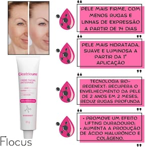 Kit Cicatricure Contorno Olhos Porcelana Antissin Bem vindo a a loja Flocus. É um prazer tê-lo a como nosso a cliente CONTEÚDO: 1 Creme Facial Antissinais Cicatricure - 50G 1 Gel Creme Facial Antimarcas Cicatricure Porcelana - 50g 1 Creme Contorno de Olhos Rugas, Bolsas e Olheiras - 15G Cicatricure é especialista no cuidado com a pele. Uma marca parceira, com soluções eficazes e acessíveis pensadas especialmente para todos aqueles que querem cuidar da pele. Sua exclusiva fórmula com Bio-Regenext ajuda a recuperar a elasticidade e a firmeza da pele, reduzindo visivelmente as rugas e linhas de expressão. O Creme Facial Cicatricure Antissinais possui a tecnologia Bio-Regenext que transmite informações de uma célula para outra, promove a regeneração natural e repara os danos na pele proporcionando aparência mais jovem. Cicatricure Contorno dos Olhos reduz o volume das bolsas em 28% aos 15 dias e em 40% aos 30 dias E proporciona olheiras menos visíveis. Sua fórmula de textura leve diminui rugas e linhas de expressão e reduz o volume das bolsas. O Gel Creme Facial Cicatricure Porcelana Antimarcas apresenta fórmula que oferece hidratação imediata, resultando em uma pele mais suave e macia desde a primeira aplicação. Promove uma aparência radiante e luminosa, realçando a beleza natural da pele e não obstrui os poros, evitando o surgimento de cravos e espinhas e mantendo a pele saudável. É indicado para uso no rosto, colo e pescoço e formulado com Hidrolisado de Pérola que ajuda a reduzir marcas e ilumina e uniformiza a pele em apenas 4 semanas. Hidrolisado de Pérola: conhecido por sua capacidade de ajudar a nutrir e revitalizar a pele, proporcionando hidratação, luminosidade, suavidade e uma aparência mais radiante. Pele hidratada, com marcas reduzidas e mais uniforme. INDICAÇÃO: Todos os tipos de pele. BENEFÍCIOS: REDUZ RUGAS possui a tecnologia Bio-Regenext, que recupera o envelhecimento da pele de 2 anos em 2 meses e reduz as rugas profundas; MAIS FIRMEZA reafirma a pele, com resultados a partir da 1 aplicação; INGREDIENTES A fórmula é rica em glicerina vegetal, óleos, manteigas e extratos vegetais que nutrem e hidratam a pele profundamente favorecendo a maciez e radiância da pele; TOQUE SECO Com partículas absorvedoras de oleosidade, confere toque seco e matifica a pele instantaneamente. Fórmula resistente à água e ao suor. MODO DE USO: Creme Facial: Aplique pela manhã e à noite no rosto, pescoço e colo sobre a pele limpa e seca. Faça movimentos de baixo para cima até completa absorção. Cicatricure Porcelana: Aplique o produto pela manhã e à noite sobre a pele limpa e seca. Massageie suavemente o rosto, pescoço e colo, evitando a área dos olhos. Creme Contorno de Olhos: Utilizar pela manhã e à noite em todo o contorno dos olhos, incluindo a área das pálpebras. Massagear com movimentos suaves desde o interior até o exterior do contorno dos olhos. Agradecemos por escolher a Loja Flocus e por confiar em nós para cuidar da beleza dos seus cabelos. Em caso de dúvidas, favor enviar sua pergunta Flocus Marca: Não Informado