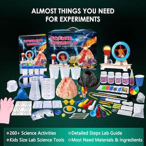 UNGLINGA Mais de 260 kits de experimentos científicos para crianças, projetos científicos ST.E.M, conjunto de química, brinquedos de aniversário de Natal, ideia de presentes para meninos e meninas, pedras preciosas de vulcão, ferramentas científicas educacionais, conjunto de cientistas - Experimentos adequados para crianças, curiosidade natural das crianças educativas e estimulantes com mais de 260 experimentos práticos, desde vulcões em erupção química, fabricação de sabão até gerador manual STEM. - Instruções fáceis de seguir, inclua o "porquê" por trás da ciência com um guia de respostas para explicar os conceitos em jogo quando as crianças inevitavelmente fazem um milhão de perguntas. - Ferramentas científicas de qualidade segura e materiais de experimentos claramente etiquetados. A maioria das crianças pode fazer o experimento científico sozinhas ou com uma pequena ajuda dos pais. - É hora de brincar, brincar e aprender! Apoia e incentiva as crianças a testar novas ideias que surgem depois de fazer o experimento inicial. - Este é um ótimo kit de ciência que permite às crianças a oportunidade de pensar e agir como um cientista. Eles vão explorar seu lado criativo e praticar habilidades importantes de resolução de problemas e pensamento crítico, tudo isso enquanto se diverte.