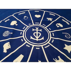Toalha para tarô azul com estampa em silk screen branca