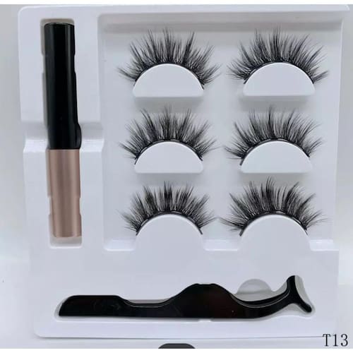 3 pares de cílios postiços magnéticos 1 aplicador 1 máscara para cílios
