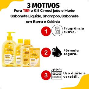 Kit Cimed João e Maria: Sabonete Liquído 400ml, Shampoo 200ml, Sabonete em Barra 75g e Colônia 200ml