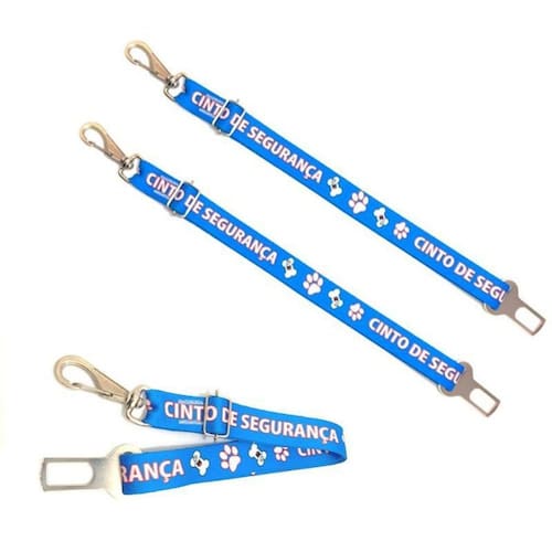 Kit contem 2 cintos de segurança na cor azul para cães e gatos. Confeccionado em fita de nylon 25 mm de diâmetro na cor preta altamente resistente; Reguladores em nylon para segurança do seu pet; Mosquetão com trava de segurança. Tamanho único. Medidas aproximada: 35 cm à 62 cm de comprimento. A guia de Segurança é um acessório indispensável para levar seu bichinho de estimação no carro com segurança e cumprindo as regras de transito. Muitas vezes não se tem uma real consciência do perigo que pode resultar um cão ou gato solto numa batida; não só o animalzinho poderia machucarse seriamente ou sair voando por uma janela, mas também se tornar um objeto que pode bater e causar graves ferimentos nos passageiros. Se o animal andar solto dentro do carro o motorista pode ser multado pelo artigo 169 do CTB, que prevê notificação e três pontos. Marca: Nica pet Ean: 7434391541775
