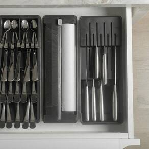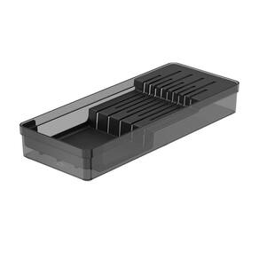 Capacidade: comporta 9 facas 5 grandes e 4 pequenas . Dimensões: 37,5 cm C x 15 cm L x 5,6 cm A . Material: Plástico PP + PS, BPA Free . Organizador Clear Modular para Talheres: