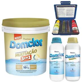 Kit Cloro Piscina Tratamento Estojo Teste Balde 10Kg - Domclor Este kit contém: