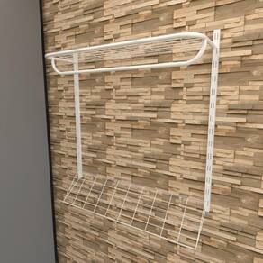 Esse Kit com cremalheiras e araras para Closet da Closet Fácil foi pensado para quem pensa em ter um móvel usual e ainda caprichar na decoração com um toque urbano, minimalista e modernoCaracterísticas:- Materiais de alta resistência- Acompanha parafusos e buchas para instalação- Regulagem de níveisItens no kit (1 metro) 21Codigo 282 - Trilho P/ Cremalheira C/ Furação Dupla 1,00 m. - 2 unCodigo par-01 - Parafusos - 6 unCodigo buc-01 - Buchas - 6 unCodigo 448 - Arara de Cremalheira C/ Tela C/ Pingente 1,00 x 0,30 - 1 unCodigo 280 - Tela P/ Sapateira Encaixe P/ Cremalheira 1,00 x 0,30 m. - 1 unEspecificações técnicasMarca: Closet FácilCor do aço: BrancoTipo de pintura: Epóxi eletrostáticoMaterial: MDF 15mm e Aço carbono (obs: MDF quando houver)Suporta: 20kg - por nívelSobre a Closet FácilA Closet Fácil nasceu com a ideia de trazer conceitos de moveis comerciais para dentro de casa, facilitando a organização e baixando o custo de aquisição de moveis. Marca: Closet Fácil