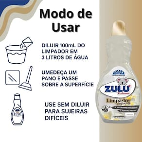 Limpeza leve: Dilua 100ml em 3L de água, aplique com pano úmido.