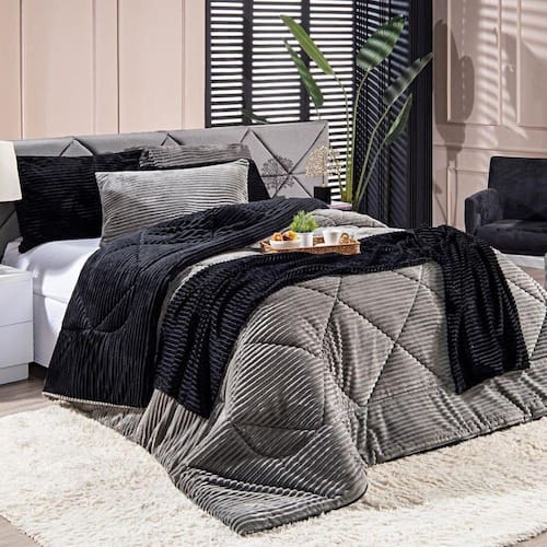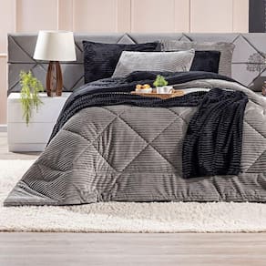 Kit Coberdrom Canelado Dupla Face Denver Casal Padrão 03 Peças - Manta Microfibra Canelada Cor Cinza A nova coleção de coberdrons Denver traz toda a sofisticação e aconchego. Por possuírem dupla face, apresentam superfície que valoriza ainda mais as cores! Confeccionado em pantográfica computadorizada com lindos desenhos geométricos. Novidade e tendência para o inverno desse ano, o coberdrom é composto de Manta Canelada Microfibra, com aquele toque incrível que conforta e aquece nas noites mais frias. Composição feita em poliéster com 150gr de enchimento, maravilhoso, sofisticado e extremamente macio, perfeito para aquecer, acompanhando também os dois porta-travesseiros canelados com Zíper. Ideal para decorar, trazer conforto e tornar o quarto ainda mais convidativo e elegante! Confira! Contém:01 Coberdrom Casal Padrão 2,35m x 2,15m02 Porta Travesseiros Canelados 70cm x 50cm OBS: Demais itens da foto são vendidos separadamente Composição:Manta Microfibra Canelada: 100% PoliésterEnchimento: 100% Poliéster Instruções de Uso e Lavagem:Vide etiqueta do produto. Atenção:Foto meramente ilustrativa.Variação das cores podem ocorrer de acordo com o monitor. Ean: 7892149102225