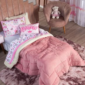 A nova coleção de Coberdrons Princesa traz toda a sofisticação e aconchego. Por possuírem dupla face, apresentam superfície que valoriza ainda mais as cores, confeccionado em pantográfica computadorizada com um lindo desenho temático pantografado no coberdrom! Composto de Manta Microfibra em poliéster com 150gr de enchimento e em Sherpa simulando lã de carneiro, extremamente macio e perfeito para aquecer. Acompanhando também dois porta-travesseiros estampados e uma almofada estampada temática super moderna! Ideal para decorar, trazer conforto e tornar o quarto ainda mais convidativo e elegante para sua princesa! Confira!