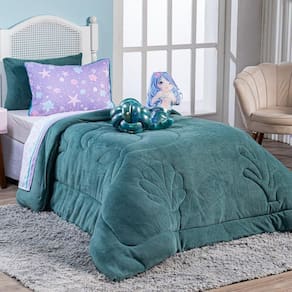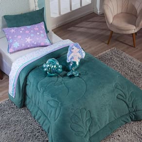 A nova coleção Sereia traz toda a sofisticação e aconchego. Por possuírem dupla face, apresentam superfície que valoriza ainda mais as cores, confeccionado em pantográfica computadorizada com lindos desenhos temáticos pantografados no coberdrom! Composto de Manta Microfibra em poliéster com 150gr de enchimento, extremamente macio e perfeito para aquecer. Acompanhando também um porta-travesseiro em mantinha, uma almofada de nó em malha gel furtacor maravilhosa e também uma almofada em formato de sereia estampada com cauda em malha furtacor super fofa! Todas as almofadas cheias em silicone. Ideal para decorar, trazer conforto e tornar o quarto ainda mais convidativo e elegante! Confira!
