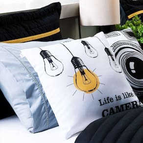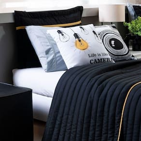 Kit Cobre Leito 4 Peças Solteiro Inove 100% Poliéster - Selfie Preto/mostarda Kit Cama Solteiro Inove 04 Peças Hipercal 200 Fios Dupla Face Inove na decoração do quarto com um kit completo e cheio de estilo! O Kit Inove foi criado para quem busca um visual moderno e divertido, combinando um cobre leito dupla face com almofadas temáticas para uma cama posta cheia de personalidade.