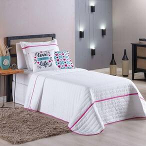 Kit Cobre Leito 4 Peças Solteiro Inove Percal 200 Fios 100% Poliéster - Love Branco/pink