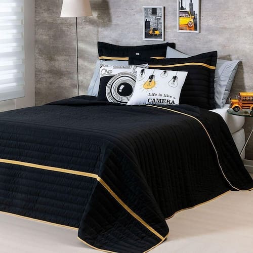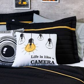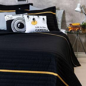 Kit Cobre Leito 5 Peças Queen Inove 100% Poliéster - Selfie Preto/mostarda