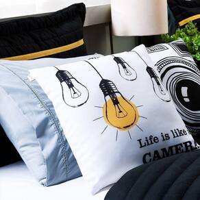 Inove na decoração do quarto com um kit completo e cheio de estilo! O Kit Inove foi criado para quem busca um visual moderno e divertido, combinando um cobre leito dupla face com almofadas temáticas para uma cama posta cheia de personalidade.