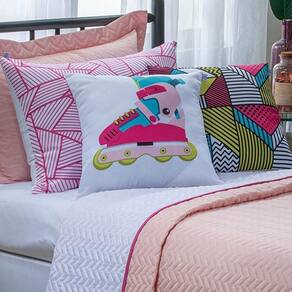 Kit Cobre Leito 5 Peças Solteiro Colorful To Decorando 100% Poliéster - Patins Rosa