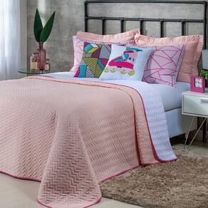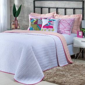 Kit Cobre Leito 7 Peças Queen Colorful To Decorando 100% Poliéster - Patins Rosa