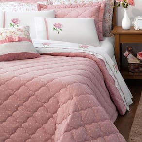 A coleção Yonara é realmente encantadora! Com tecido de percal e uma combinação de estampas de poá e floral, ela traz um toque delicado e charmoso para o seu ambiente.