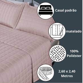 Kit Cobre Leito Casal Soft Dupla Face Matelado 3 Peças Variação: Rosê Seja bem-vindo a à Atual Ecommerce Se você procura praticidade, conforto e um toque de elegância para seu quarto sem gastar muito, chegou ao lugar certo. Apresentamos o Kit 3 Pçs Cobre Leito Casal Padrão Soft Dupla Face Matelado, a escolha perfeita para transformar seu ambiente de forma rápida e acessível. Sabe aquele incômodo de ter que comprar vários jogos para variar a decoração Com o Soft Dupla Face, você tem dois visuais diferentes em um único produto, além de um toque macio que deixa sua cama irresistível. Veja por que nossos clientes aprovam: comprei para o quarto de hóspedes e adorei Bonito, leve e prático. - Luciana, SP O dupla face é incrível Posso mudar a decoração quando quiser. - Andréa, MG seca rápido e não amassa tanto, perfeito para o dia a dia. - Rogério, PR Benefícios principais: Versatilidade: 2 cores/estilos em um só produto. Conforto: tecido macio e agradável ao toque. Praticidade: fácil de lavar e secagem rápida. Especificações técnicas: Tecido: 100% poliéster Manta de enchimento: 100% poliéster Medidas: 01 Cobre Leito 2,60m x 2,40m 02 Porta Travesseiros 70cm x 50cm aba americana Matelado em costura para maior durabilidade : 3 meses contra defeitos de fabricação - segurança e confiança na sua compra. Mais conforto, mais estilo e mais praticidade no seu dia a dia, sem pesar no seu bolso. limitado - garanta já o seu e transforme o visual do seu quarto hoje mesmo Agradecemos sua visita à Atual Ecommerce. Marca: Não Informado
