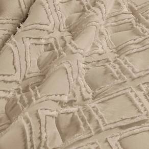 O acabamento em 3D no tecido é o detalhe que faz toda a diferença. Cada linha e textura criam uma profundidade visual que transforma o cobre-leito em uma verdadeira obra de arte têxtil.
