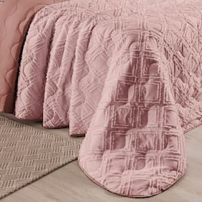 O acabamento em 3D no tecido é o detalhe que faz toda a diferença. Cada linha e textura criam uma profundidade visual que transforma o cobre-leito em uma verdadeira obra de arte têxtil.