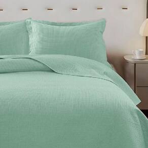 Kit Cobre Leito Colcha Afeto Casal 3 Peças Percal 300 Fios Peletizado - Verde - 100% Poliéster