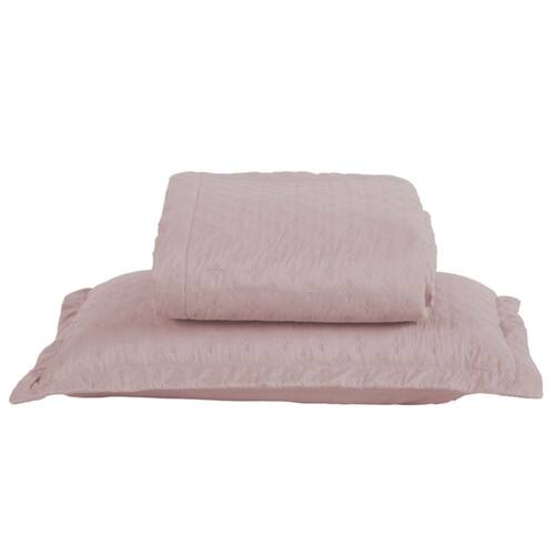 - O porta travesseiro mede 70cm x 50cm e possui aba americana;