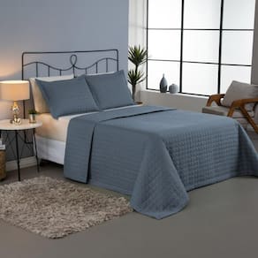 Kit Cobre Leito Colcha Bellini Casal Padrão Dupla Face Percal 300 Fios Textura Matelassê 3 Peças - Azul Kit Cobre Leito Colcha Bellini - O Conforto que Você Procura