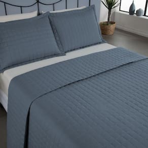 Kit Cobre Leito Colcha Bellini Casal Padrão Dupla Face Percal 300 Fios Textura Matelassê 3 Peças - Azul Kit Cobre Leito Colcha Bellini - O Conforto que Você Procura