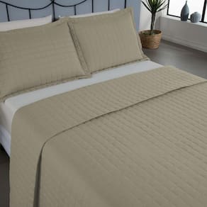 Kit Cobre Leito Colcha Bellini Queen Dupla Face Percal 300 Fios Textura Matelassê 3 Peças - Cáqui Kit Cobre Leito Colcha Bellini - O Conforto que Você Procura