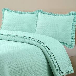 Kit Cobre Leito Colcha Bello Queen Dupla Face 3 Peças - Verde Explore o luxo e a sofisticação com o Cobre Leito Bello, uma peça excepcional que eleva o conforto do seu quarto a patamares superiores. O tecido de micropercal, com sua trama fina e suave, proporciona uma experiência de toque irresistível, envolvendo você em uma sensação de maciez inigualável.