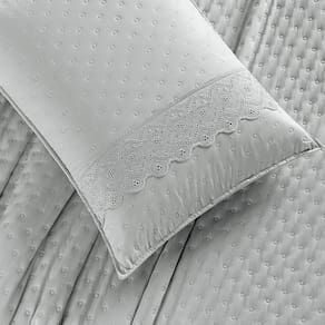 Kit Cobre Leito Colcha Bouclê Queen Laise Bordada Micropercal 200 Fios 3 Peças - Cinza Geada - Única