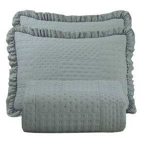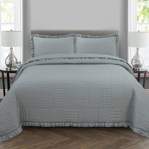Kit Cobre Leito Colcha Casa Scarpa Maison King C/ Babado Percal 300 Fios 3 Peças - Cinza