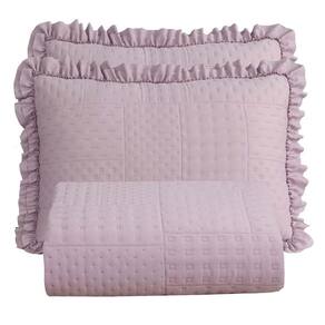 Seu design acolchoado matelado em padrão geométrico transmite sofisticação, enquanto os babados delicados nas bordas adicionam um toque clássico e romântico ao visual da sua cama. Além de decorar, o cobre leito é resistente, fácil de lavar e de secagem rápida, garantindo praticidade para o dia a dia.