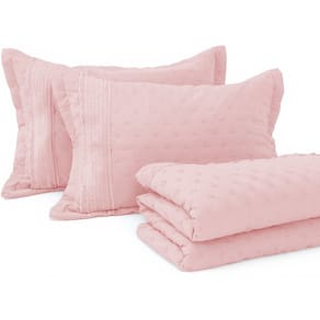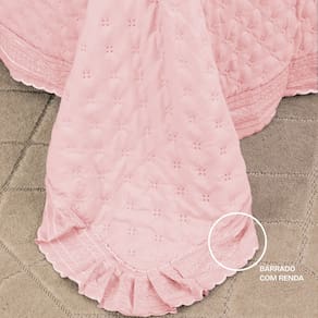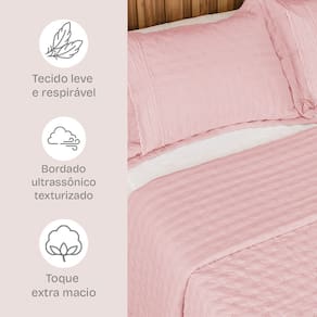 Kit Cobre Leito Colcha Casal 3 peças com Bordado Inglês Micro Percal Ultrassônico BF Colchões - Rosa