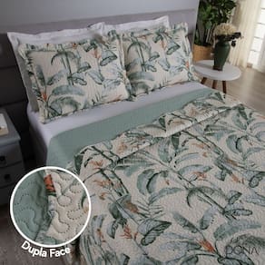 Kit Cobre Leito Colcha Casal Dupla Face Amazônia 3 Peças - Cobre Leito Casal Dupla Face